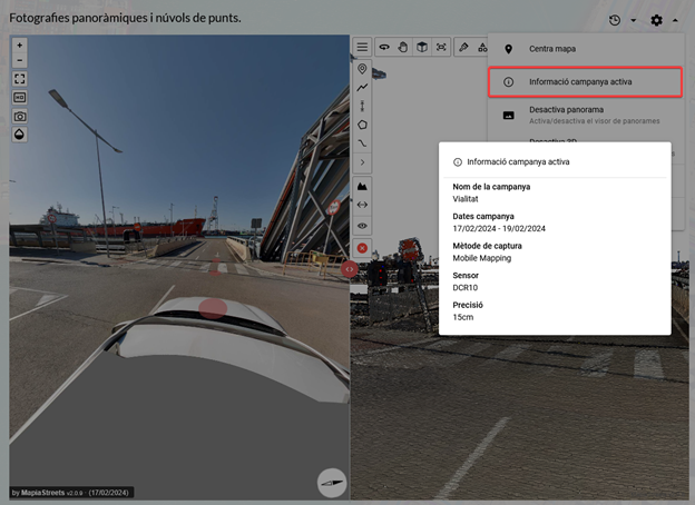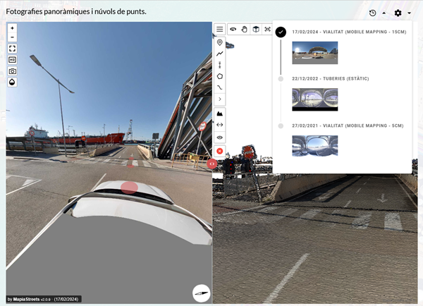 La nueva versión de Mapia® STREETS permite consultar el histórico de datos capturados en campo a lo largo del tiempo. El usuario puede consultar y explotar las imágenes panorámicas o nubes de puntos de campañas anteriores.
